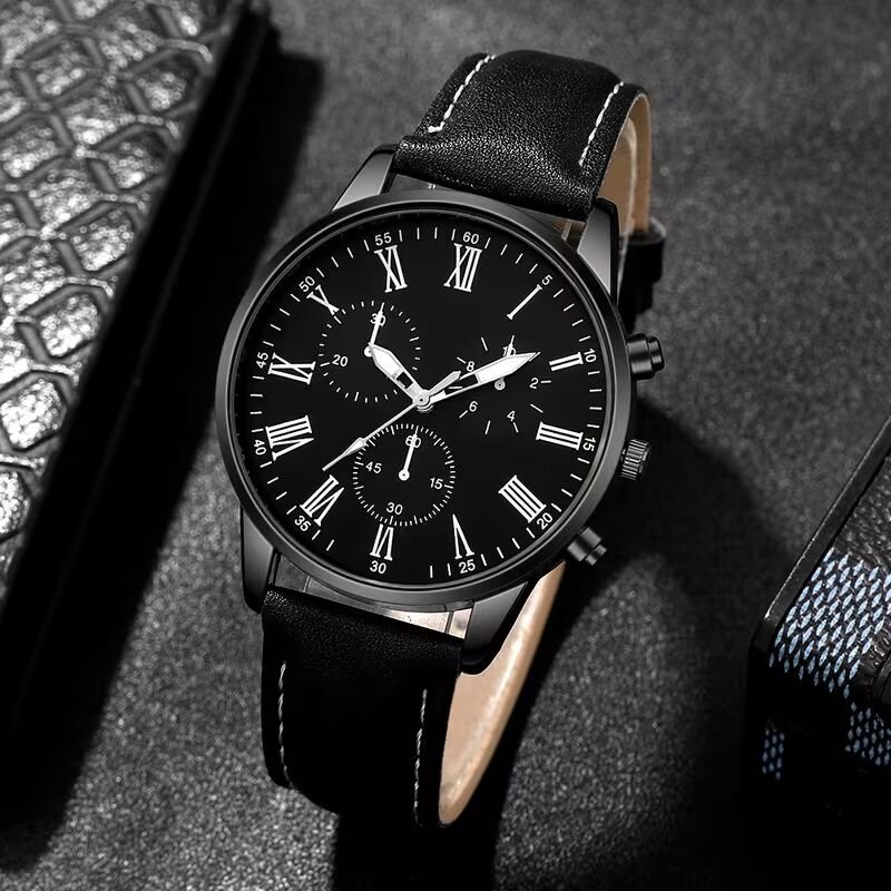 Elevate your style with this 4-piece Men’s Luxury Watch & Jewelry Set. Includes a black analog chronograph watch, matching bracelet, necklace, and ring. Features stylish subdials and comes gift-boxed perfect for birthdays, Christmas, or Eid.