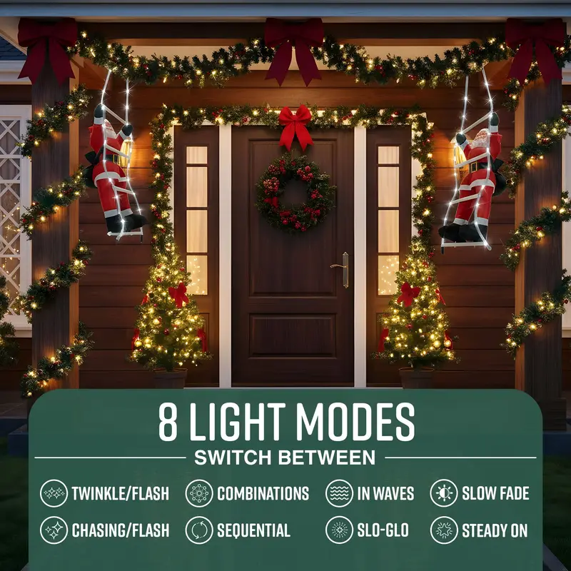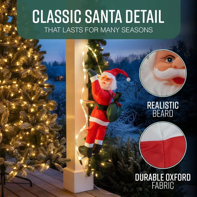 60cm LED Santa Climbing Rope Decoration – 48 Lights, 8 Modes, Outdoor Christmas Display