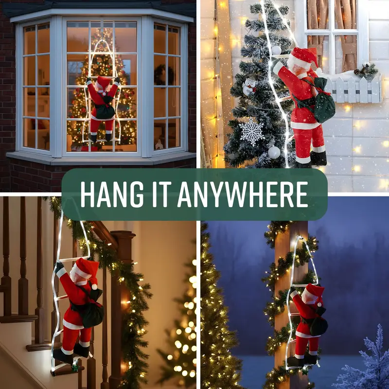 Decorate your home for the holidays with this 60cm Santa climbing rope featuring 48 LED lights and 8 lighting modes. With a 95cm height and 5m lead wire, it’s perfect for outdoor use on gardens, windows, and Christmas displays. Easy to plug in and adds festive cheer to any space.