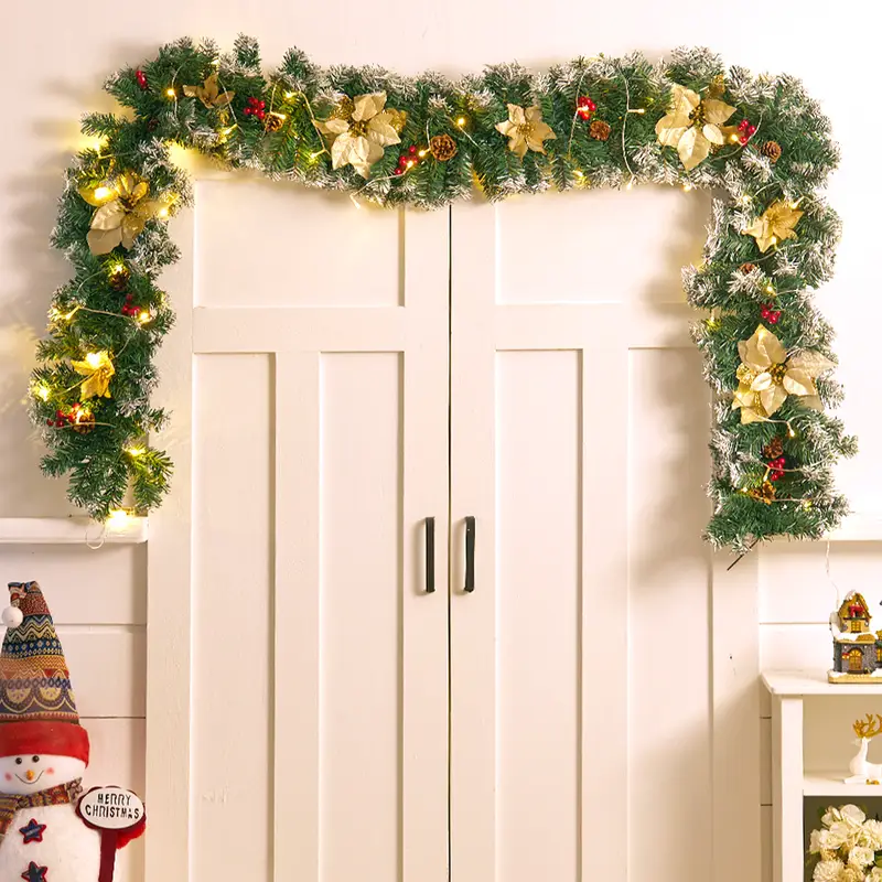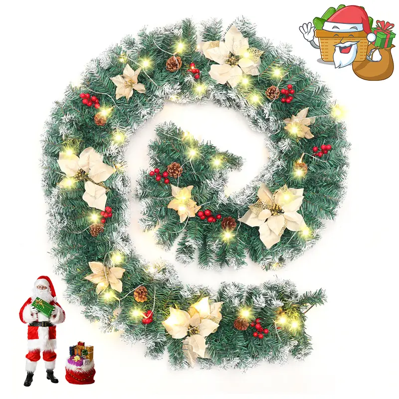 Enhance your holiday décor with this 270cm/9ft Christmas garland, perfect for fireplaces, stairs, and trees. Featuring illuminated baubles, flower balls, and festive accents, it adds a warm, cheerful touch to your home for Christmas celebrations.